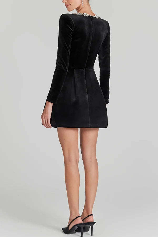 Robe À Manches Longues En Velours Ornée