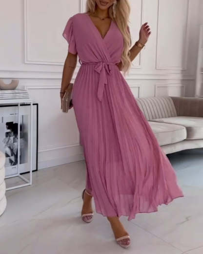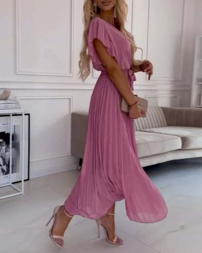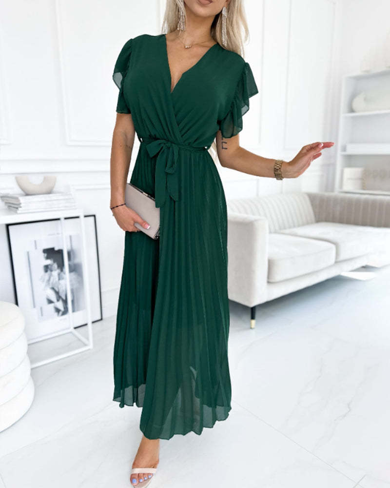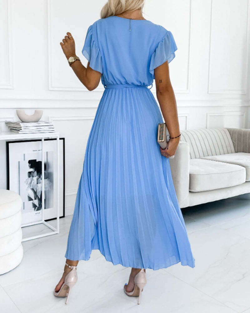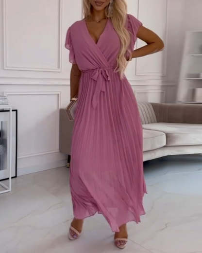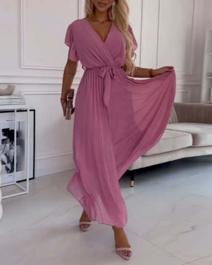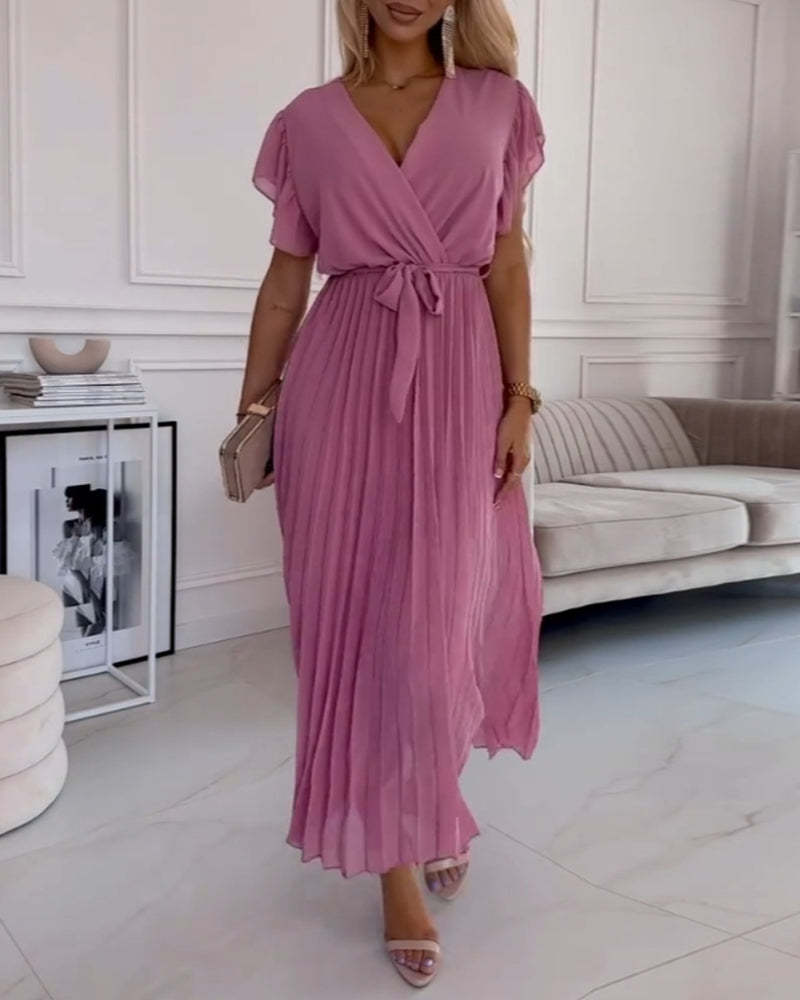 Robe élégante avec manches froncées & encolure en V